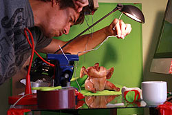 L'étonnant Carlo Vogele, luxembourgeois d'origine, prépare un film dans sa technique favorite du stopmotion dont les acteurs seront cette fois des saucisses.